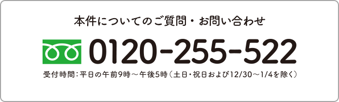 当社へのお電話および当社から差し上げる際のお電話は、お申し出内容の確認のため通話内容を録音させていただく場合がございます。あらかじめご了承ください。