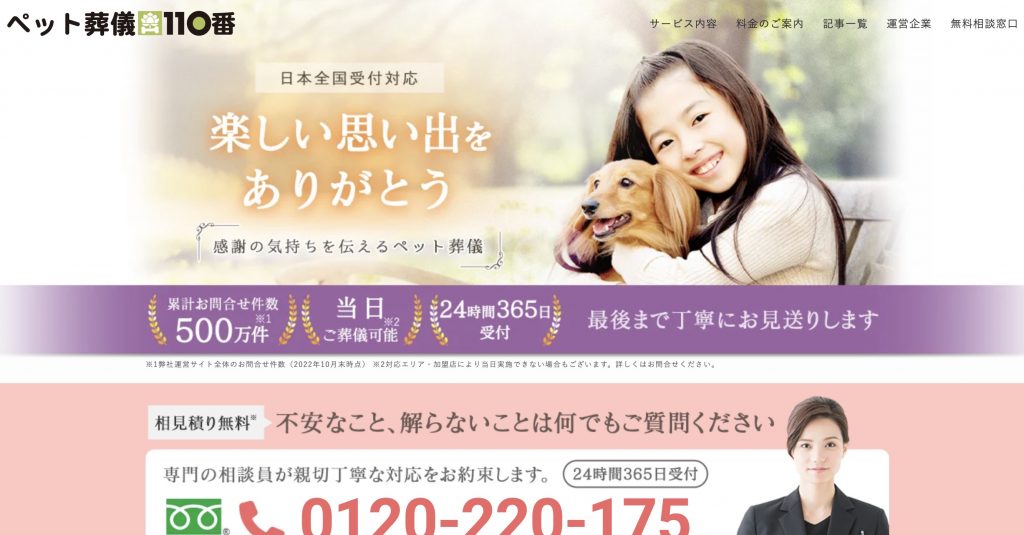 ペット葬儀110番は、シェアリングテクノロジー株式会社が運営するペット葬儀の専門サイトです。