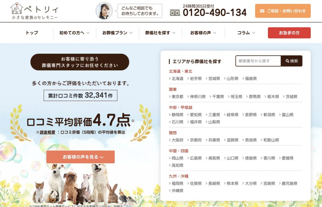 ペトリィは、日本全国対応のペット火葬・ペット葬儀の専門サイトです。